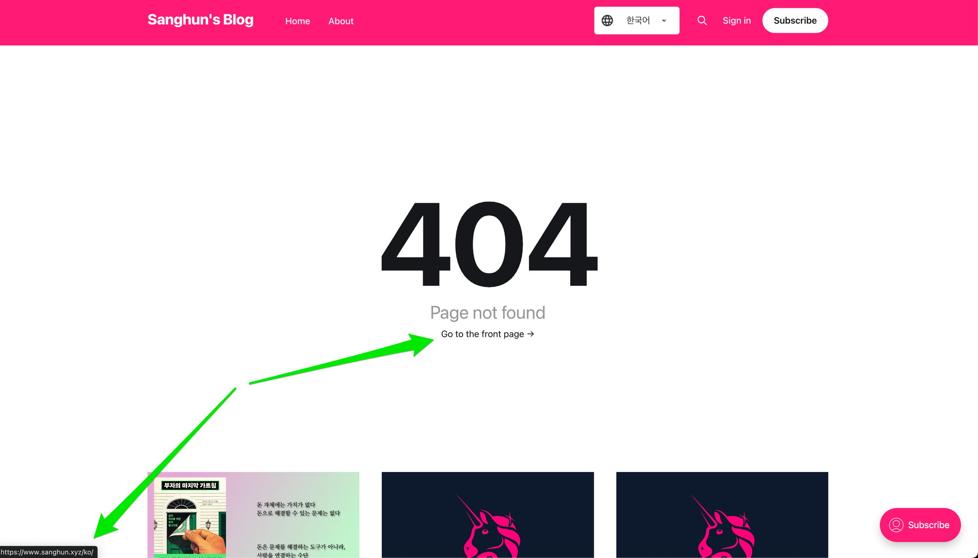 </script>아무 url이나 입력해서 (e.g. {host}/ko/404error) 홈링크가 {host}/ko/로 잘 연결되는지 확인해보자.